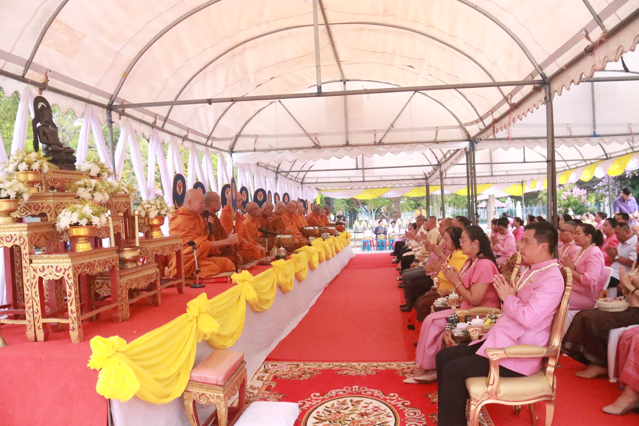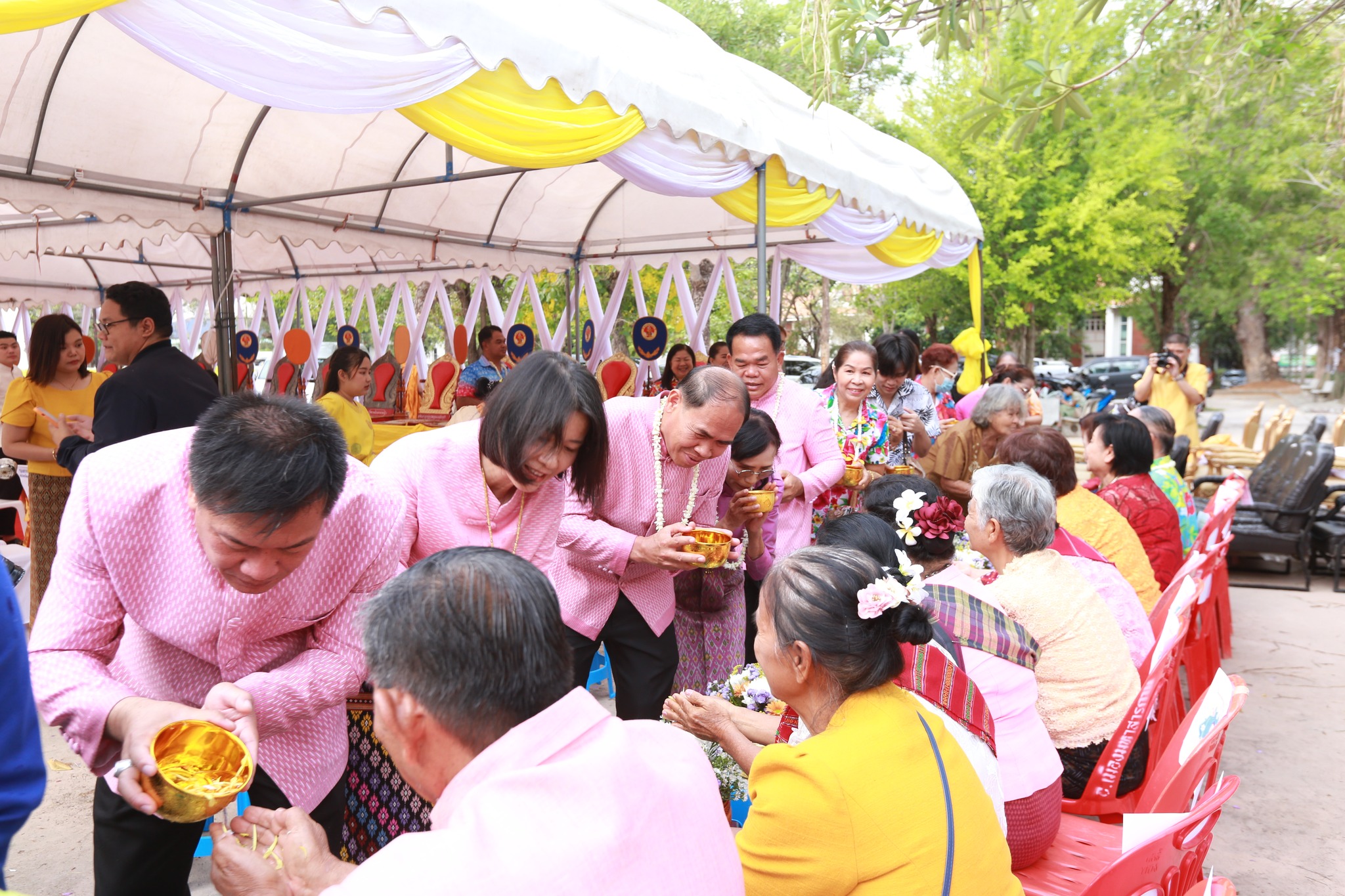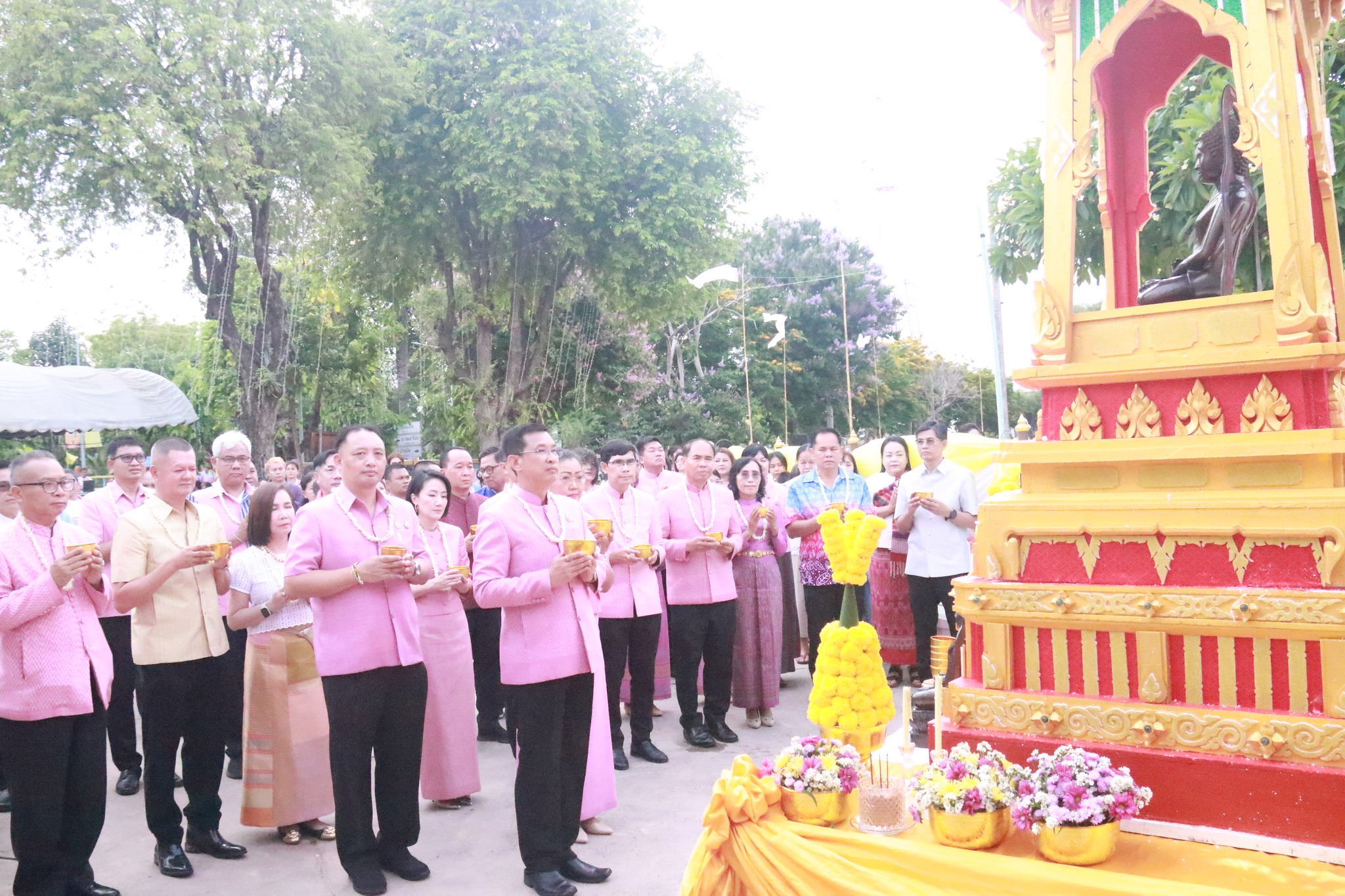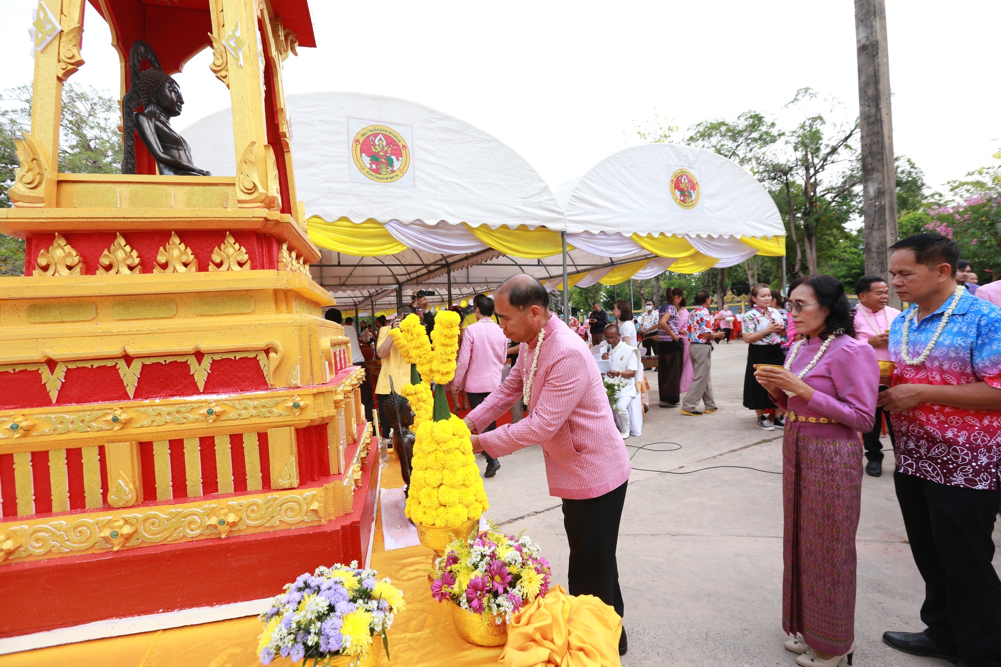 วันที่ 13 เมษายน 2568 เวลา 06.00 น. นายวิบูรณ์ แววบัณฑิต ผู้ว่าราชการจังหวัดมหาสารคาม เป็นประธาน พร้อมด้วย นางสุดารัตน์ แววบัณฑิต นายกเหล่ากาชาดจังหวัดมหาสารคาม รองผู้ว่าราชการจังหวัดมหาสารคาม หัวหน้าส่วนราชการ และประชาชนชาวจังหวัดมหาสารคาม ร่วมพิธีทำบุญตักบาตรวันสงกรานต์ ประจำปี 2568 โดยมีกิจกรรมประกอบด้วย พิธีทำบุญตักบาตรพระสงฆ์ สามเณร จำนวน 160 รูป ประธานกล่าวคำอวยพรเนื่องในเทศกาลสงกรานต์และผู้สูงอายุ พิธีสรงน้ำพรพระพุทธกันทรวิชัย อภิสมัยธรรมนายก พิธีรดน้ำขอพรผู้สูงอายุ โอกาสนี้ นายสายยันต์ ภิรมย์กิจ ปลัดเทศบาลปฏิบัติหน้าที่นายกเทศมนตรีเมืองมหาสารคาม พร้อมด้วย รองปลัดเทศบาล หัวหน้าส่วนการบริหารงานเทศบาล และเจ้าหน้าที่ที่เกี่ยวข้อง ร่วมในพิธีบริเวณหน้ามณฑปพระประธานกันทรวิชัย โดยมีประชาชนเข้าร่วมกิจกรรมเป็นจำนวนมาก