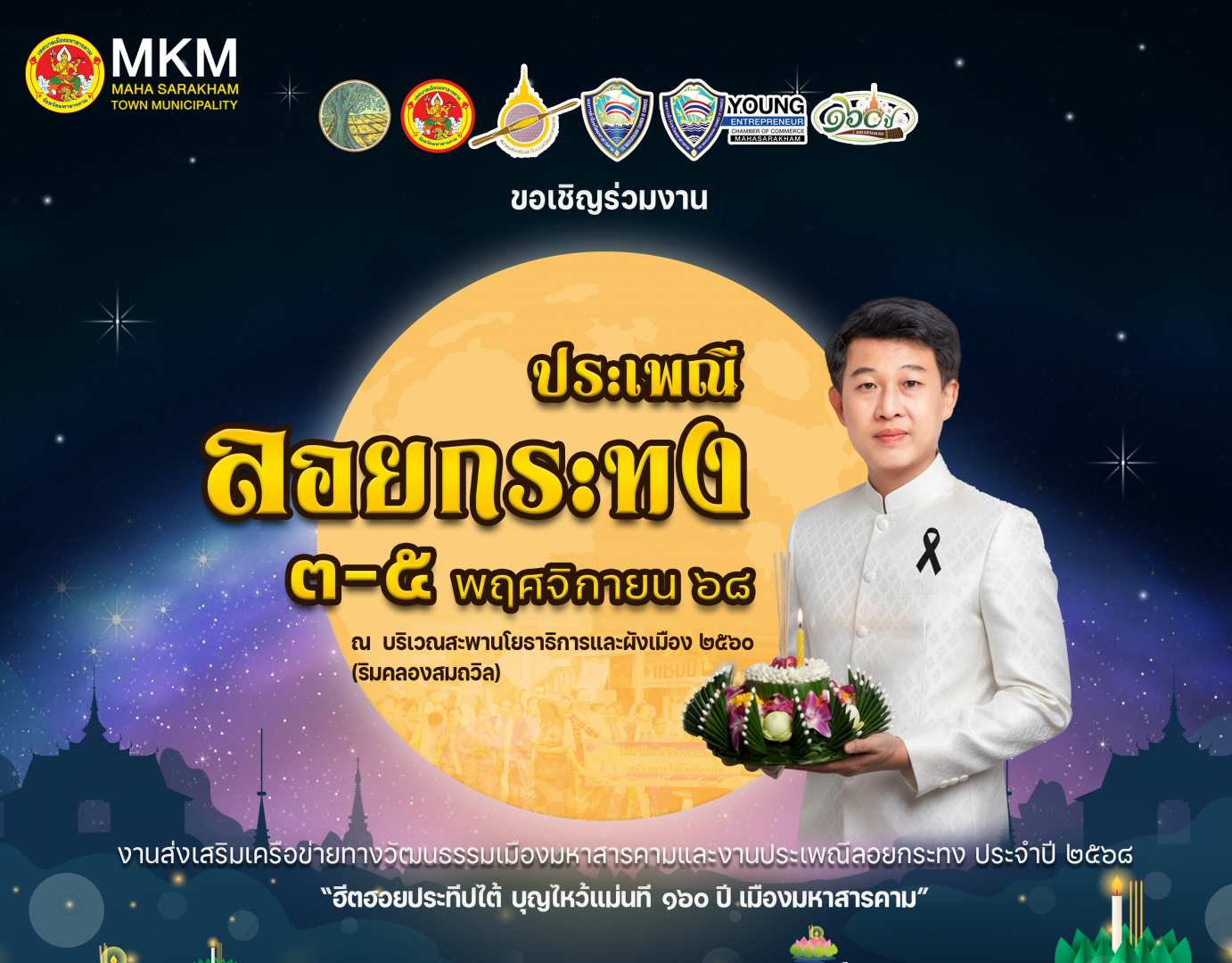 ข่าวประชาสัมพันธ์, ประชาสัมพันธ์-หน้าแรกเทศบาลเมืองมหาสารคาม เชิญร่วมงานประเพณี “ลอยกระทง ประจำปี 2568” ปรับรูปแบบงานให้เหมาะสมและงดกิจกรรมบางประเภท เพื่อความเรียบง่าย Leave a Comment / ข่าวประชาสัมพันธ์, ประชาสัมพันธ์-หน้าแรก / admin02 เทศบาลเมืองมหาสารคาม