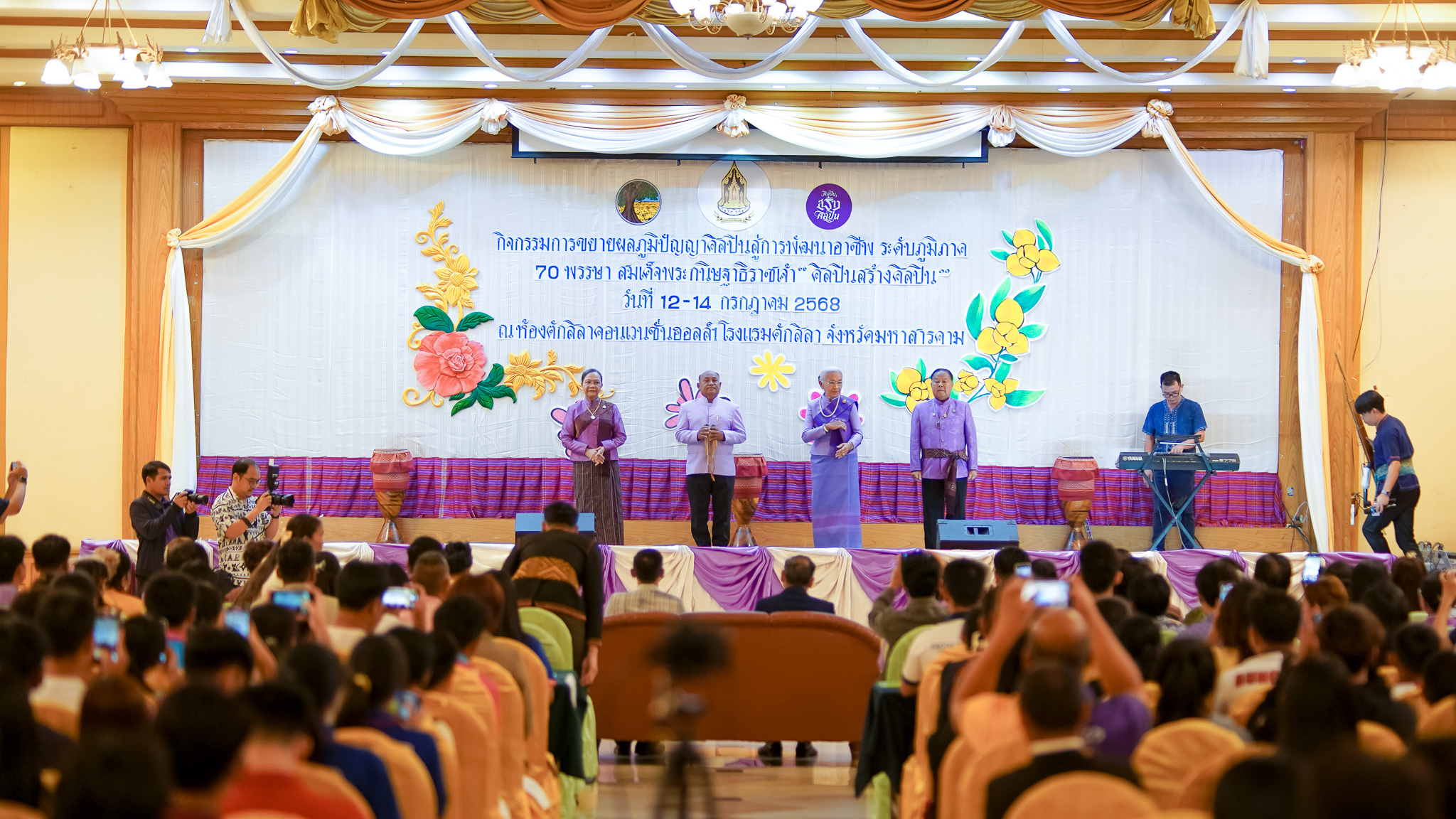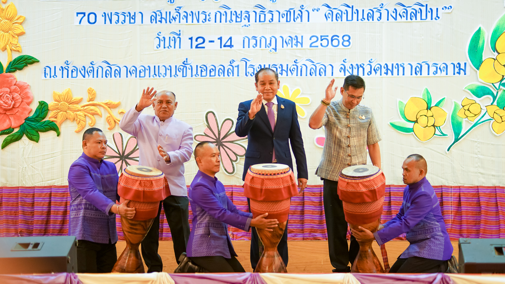 วันที่ 12 กรกฎาคม 2568 เวลา 10.00 น. นายภาคิน ติระพงศ์ไพบูลย์ นายกเทศมนตรีเมืองมหาสารคาม ร่วมกิจกรรมขยายผลภูมิปัญญาศิลปินสู่การพัฒนาอาชีพ ระดับภูมิภาค 70 พรรษา สมเด็จพระกนิษฐาธิราชเจ้า “ศิลปินสร้างศิลปิน” โดยมี นายประสพ เรียงเงิน ปลัดกระทรวงวัฒนธรรม เป็นประธานเปิดกิจกรรม ครั้งนี้ นายวิบูรณ์ แววบัณฑิต ผู้ว่าราชการจังหวัดมหาสารคาม กล่าวต้อนรับ พร้อมด้วย หัวหน้าส่วนราชการ ศิลปินแห่งชาติ ศิลปินมรดกอีสาน ศิลปินพื้นบ้าน ผู้ทรงคุณวุฒิ และนักเรียน นิสิต นักศึกษา เข้าร่วมกิจกรรม