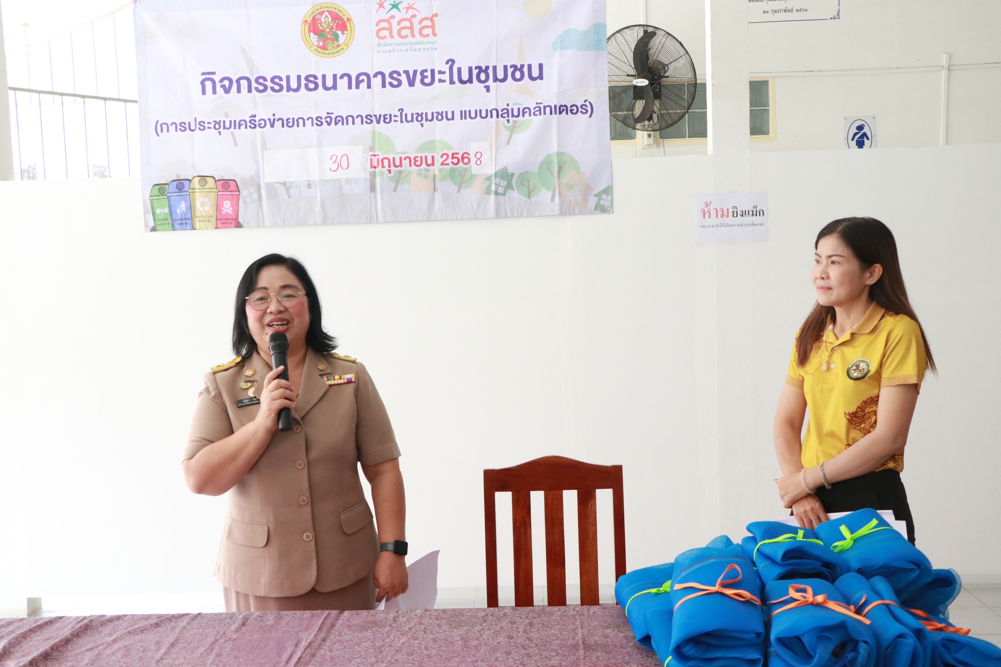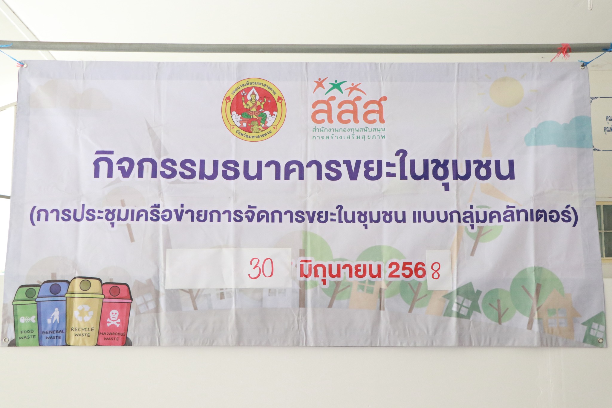 วันที่ 30 มิ.ย.68 เวลา 09.00 น. สำนักสาธารณสุขและสิ่งแวดล้อม เทศบาลเมืองมหาสารคาม จัดกิจกรรมรณรงค์การคัดแยกขยะและธนาคารขยะในชุมชน นายภาคิน ติระพงศ์ไพบูลย์ นายกเทศมนตรีเมืองมหาสารคาม มอบหมายให้ นายโกพัสต์ สมสาร์ รองนายกเทศมนตรีเมืองมหาสารคาม ประธาน กล่าวพบปะให้กำลังใจและมอบนโยบายการบริหารจัดการขยะในชุมชน นางนัฏฐิยา โยมไธสง ผู้อำนวยการสำนักสาธารณสุขและสิ่งแวดล้อม ประธานชุมชน และอสม.ชุมชนศรีสวัสดิ์ 1 2 3 ชุมชนตักสิลา 1 2 เข้าร่วมต้อนรับ โดยมีวัตถุประสงค์ เพื่อส่งเสริมการจัดการขยะในครัวเรือน สร้างจิตสำนึกรักษาสิ่งแวดล้อม และสร้างรายได้ให้กับชุมชน สามารถจัดการขยะได้อย่างยั่งยืนต่อไป จากนั้นประธานมอบของที่ระลึกให้กับ”สุดยอดสมาชิก”ในการดำเนินการคัดแยกขยะและธนาคารขยะในชุมชน พร้อมมอบสมุดคู่ฝากธนาคารขยะ เป็นกรมธรรม์ความคุ้มครองชีวิต ให้กับสมาชิก ณ วัดศรีสวัสดิ์ ตำบลตลาด อำเภอเมือง จังหวัดมหาสารคาม